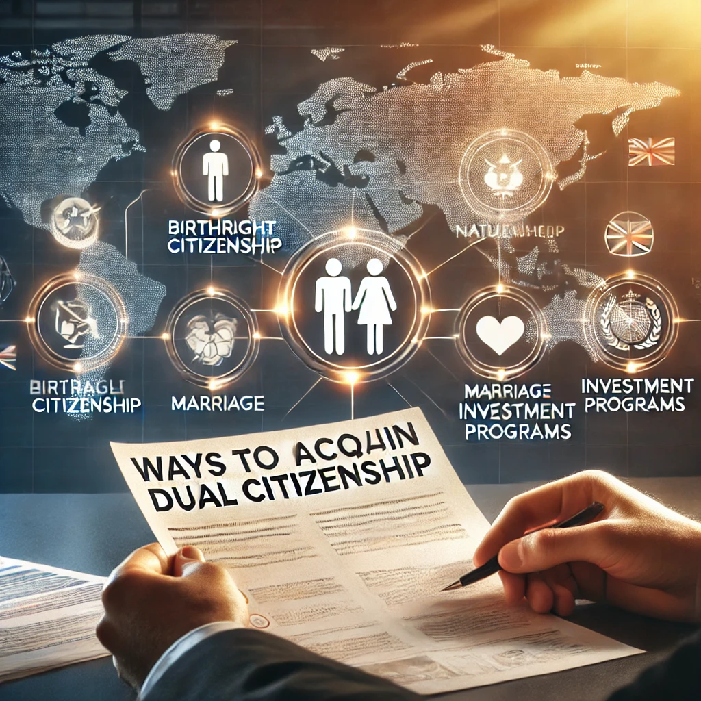 이중국적 취득 가능한 방법 총정리 이중국적을 취득하는 방법은 크게 네 가지로 나눌 수 있어요: 출생, 결혼, 귀화, 특별 허가예요.