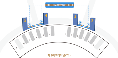 - 스마트패스 게이트 접근: 공항 내 스마트패스 전용 출입국 심사 게이트를 찾습니다.