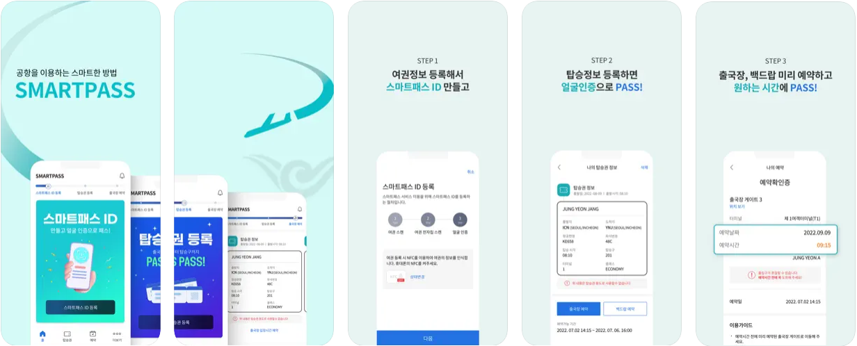>> 앱스토어 'ICN Smartpass' 다운로드 ※ 이 서비스를 이용하려면 본인의 얼굴을 '인천공항 스마트패스'(ICN Smartpass)이나 공항 셀프체크인 키오스크에서 서비스 이용 30분 전까지 등록해야하며, 안면정보(ID)는 한 번 등록으로 5년간 계속 이용이 가능합니다.