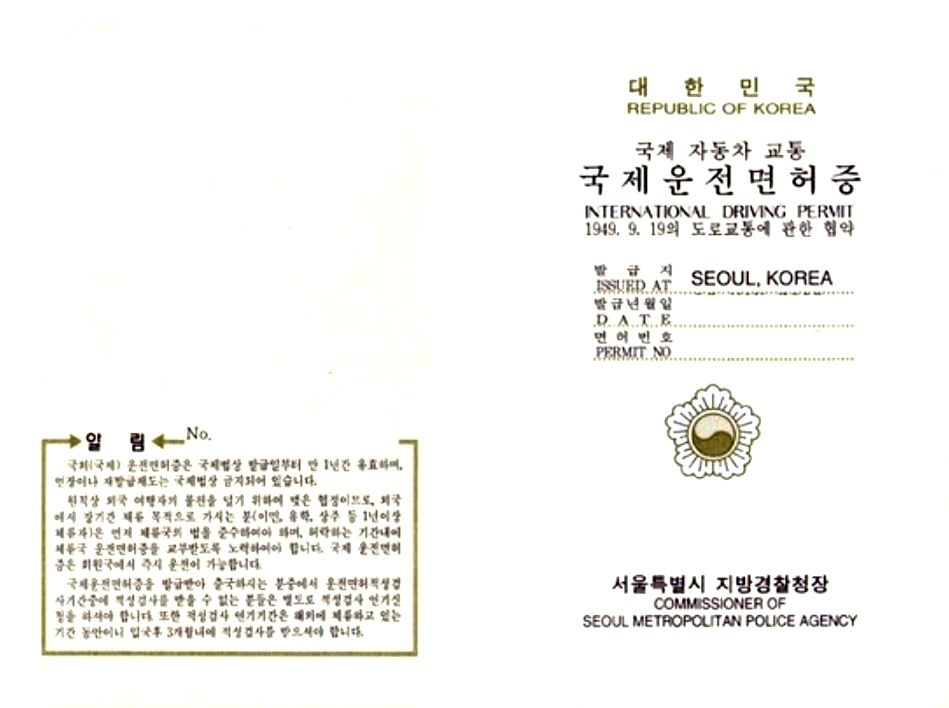 - 국제운전면허증은 단독으로 사용할 수 없으며, 반드시 여권과 국내 운전면허증도 함께 소지해야 합니다.