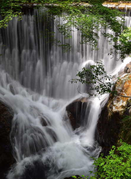 폭포의 시원한 물줄기와 주변의 푸른 숲은 힐링과 여유를 선사합니다.