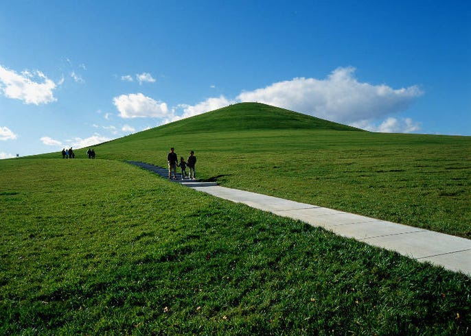 이 공원은 유명 건축가 이소자키 아라타가 설계한 곳으로, 현대적인 조형물과 자연이 조화를 이루고 있습니다. 넓은 잔디밭과 인공 연못이 있어 산책이나 피크닉을 즐기기에 좋습니다.