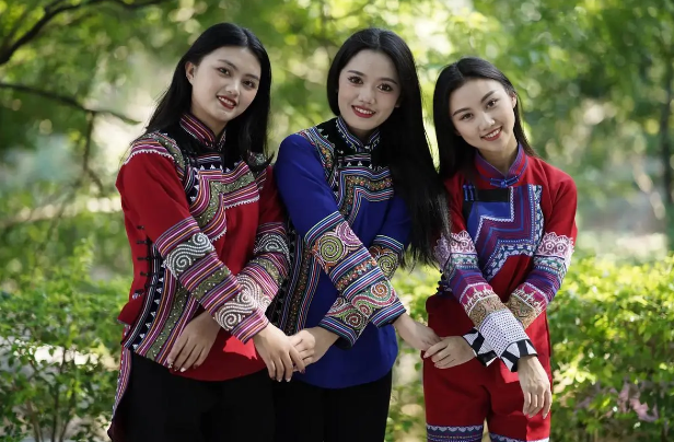 이족은 다양한 색상의 천과 실을 사용하여 복잡한 무늬의 직물을 제작하는 전통 공예를 가지고 있으며, 이는 그들의 문화적 정체성과 독창성을 잘 나타냅니다.