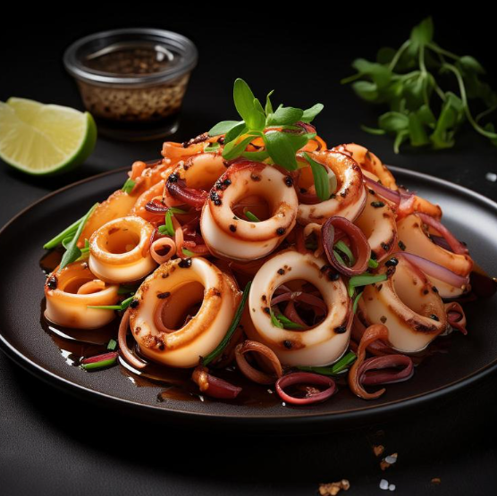 오징어는 볶음 요리나 튀김 요리에 자주 사용됩니다. 특히 매콤한 양념과 함께 볶은 오징어 요리는 중국 요리에서 매우 인기가 많습니다.