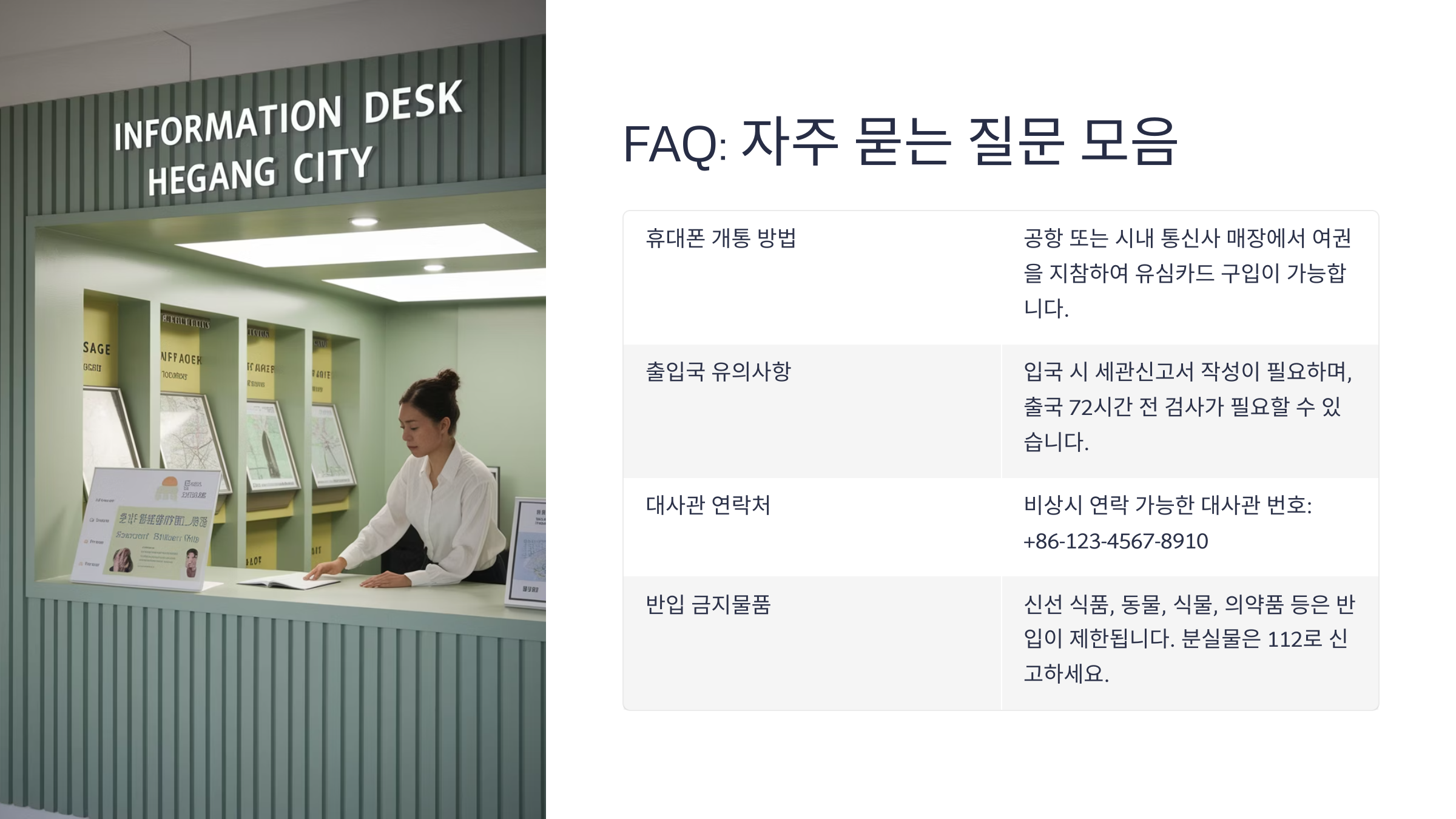허강시는 한국인이 많지 않은 지역이라 현지 행정 절차가 다소 까다로울 수 있어요. 그래서 기본적인 중국어 회화가 가능하면 정말 많은 도움이 된답니다!