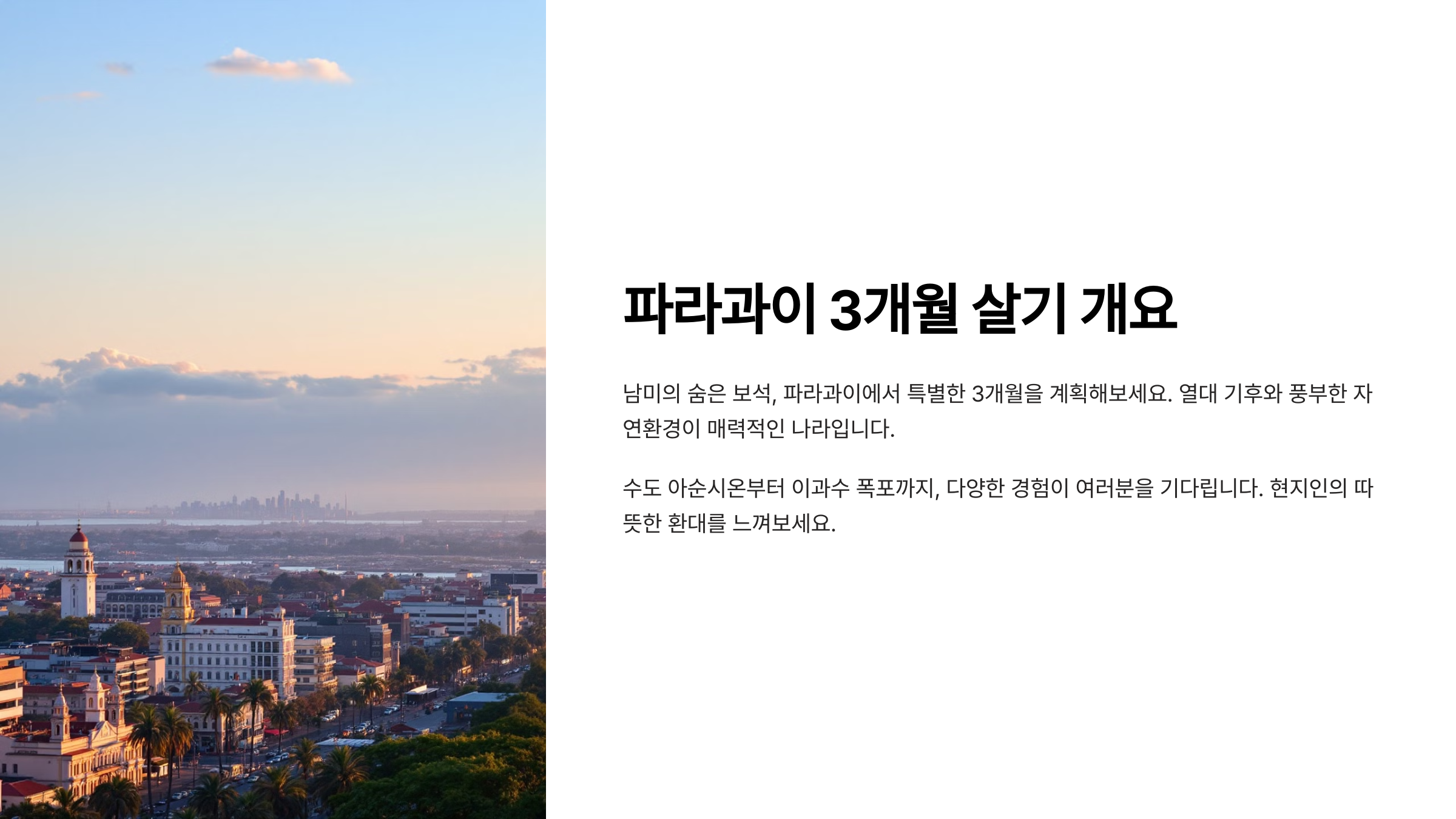 📌 이번 글에서는 파라과이에서 3개월 동안 살아볼 수 있는 추천 코스를 소개하고, 장기 체류 시 주의해야 할 점까지 자세히 알려드릴게요! 🚀