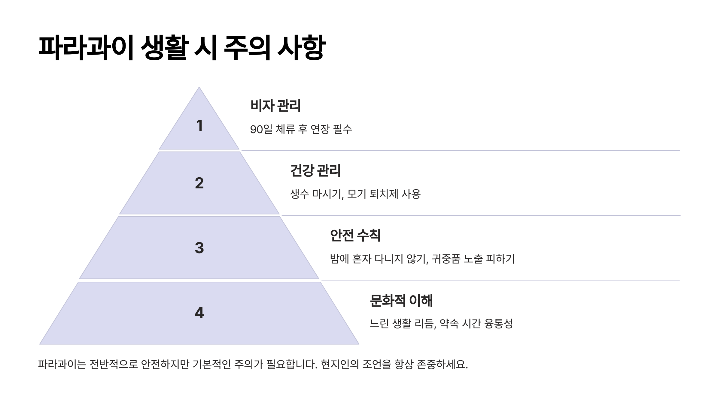 📌 3개월 동안 파라과이에서 거주하면서 저렴한 비용으로 여유롭게 생활할 수 있어요! 이제 파라과이에서 생활할 때 꼭 주의해야 할 사항들을 알아볼게요. 🚨