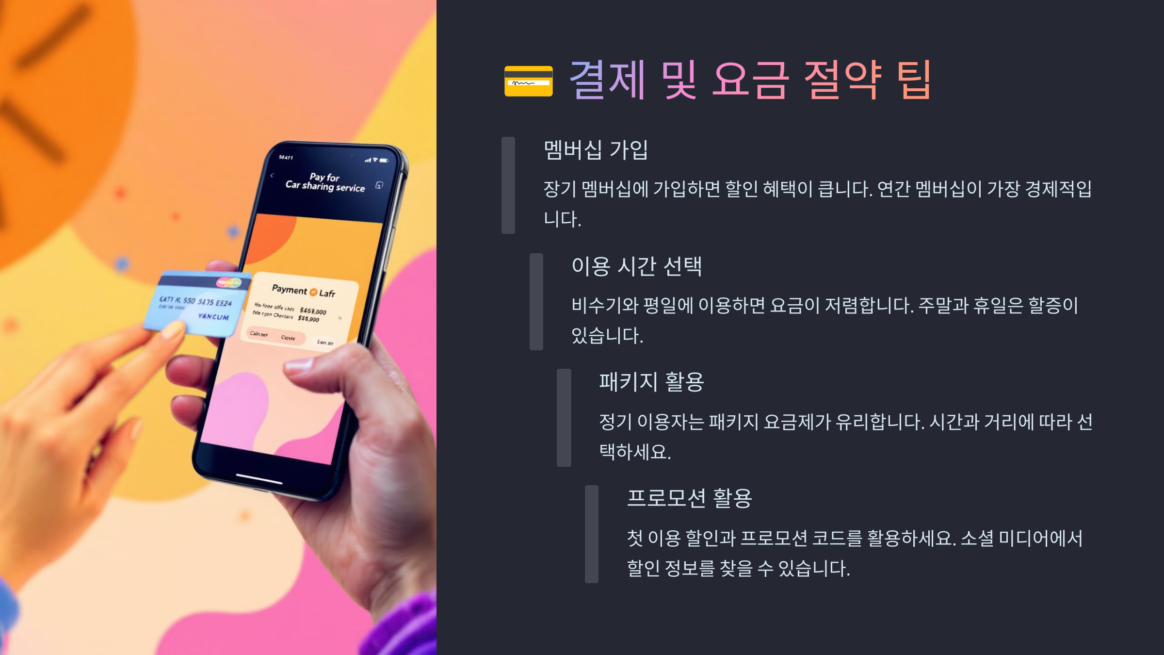 이제 차량 공유 서비스를 스마트하게 활용해 보세요! 🚖