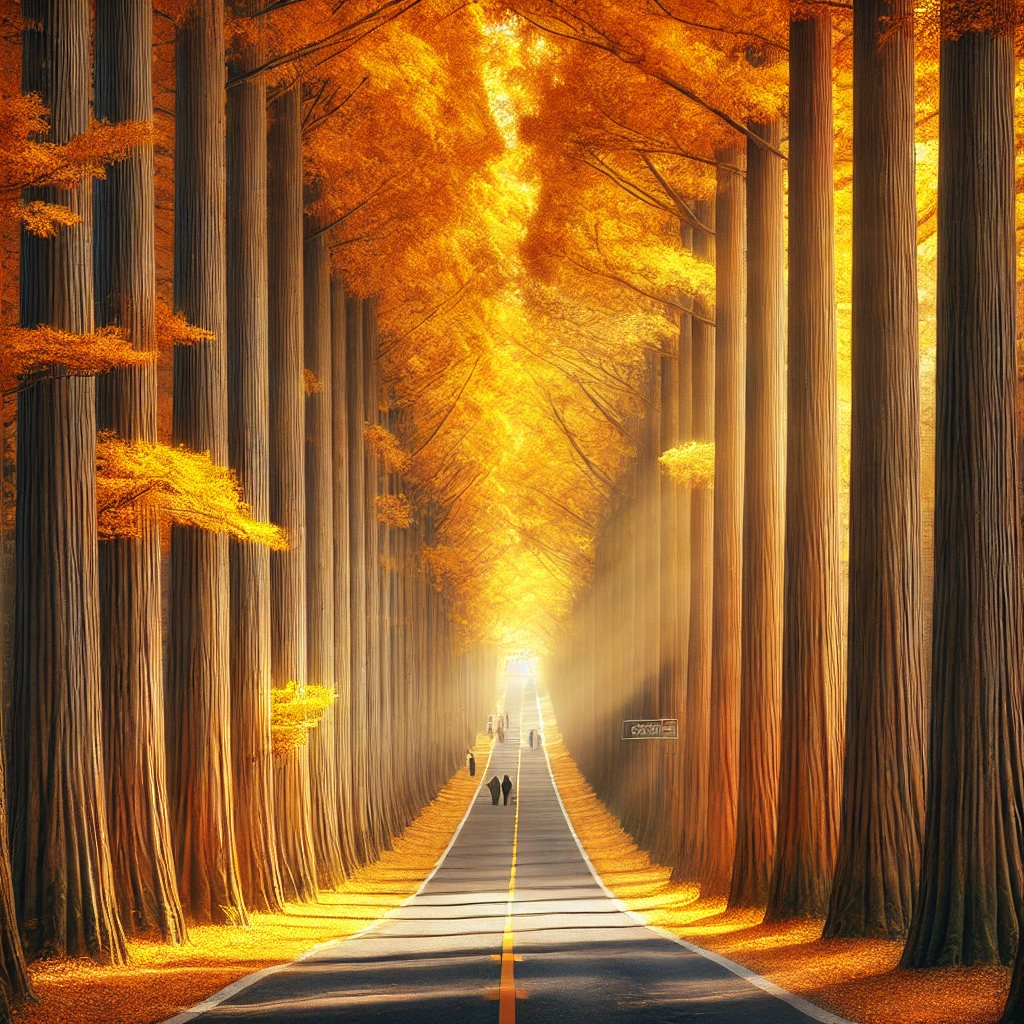 전라남도 담양에 위치한 메타세쿼이아길은 대한민국의 대표적인 가을 명소 중 하나입니다. 이 길은 양옆으로 쭉 뻗은 메타세쿼이아 나무들이 만들어내는 장관으로 유명하며, 가을이 되면 나무들이 노랗게 물들어 환상적인 풍경을 자아냅니다.